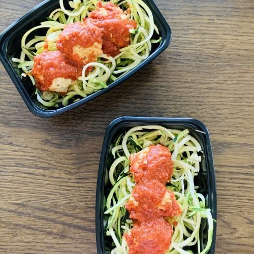Chicken Parmesan Meatballs w Zoodles