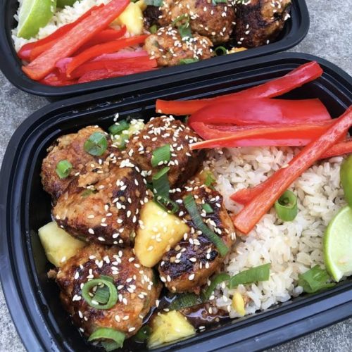 Honey Sriracha Glazed Meatballs w Cauliflower Rice