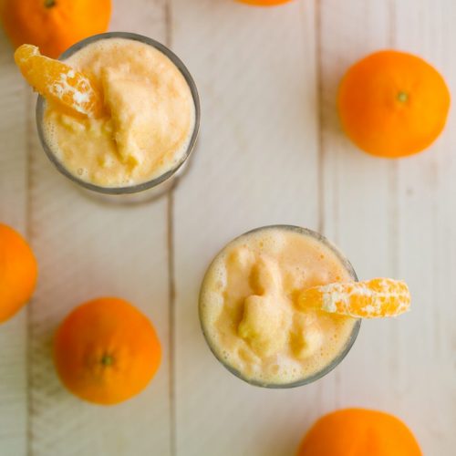 • Add in all the remaining ingredients and blend until thick and frosty. You want to make sure you fully blend the citrus so that it becomes smooth and silky without and pulp or rind bits. Keep blending until you see a smooth swirl in your blender. If needed, add a splash of non-dairy milk or another liquid like fresh-pressed orange juice.